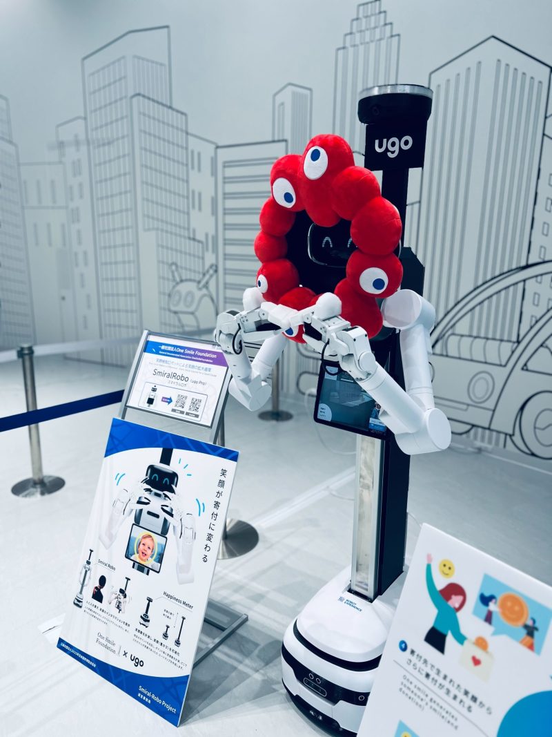 僕がお手伝いしたのは「笑顔を寄付に変える」取り組みをしている一般社団法人One Smile Foundationと、「人とロボットの融合」を掲げるugo株式会社のコラボブース。笑顔を感知するシステムとロボットがコラボすることで、より人々の笑顔を引き出したり可視化できるよね、という取り組みです。こちらの動画をご覧いただくと雰囲気が伝わるかと思います。